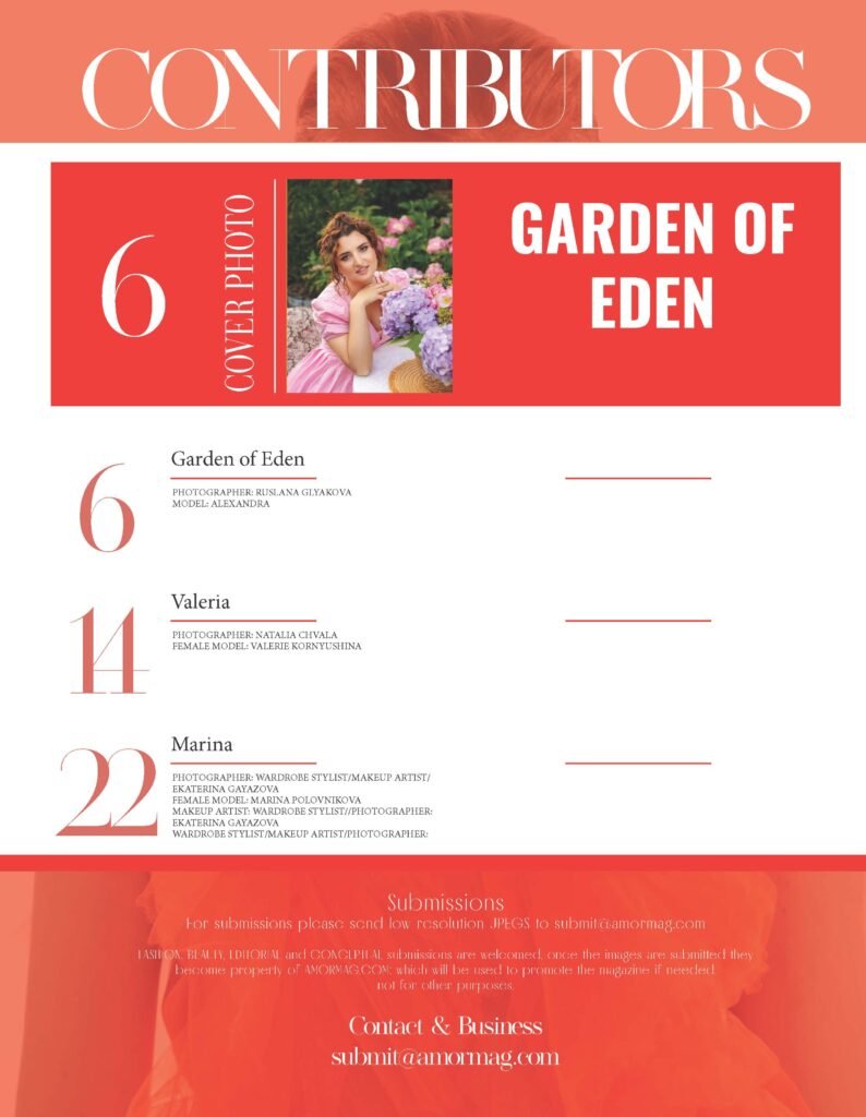 Amor Magazine is delighted to introduce “Paradise Garden”, a poetic and atmospheric editorial created by photographer Ruslana Glyakova. Through soft light, pastel tones, and ethereal compositions, this series transports us into a serene dream world where beauty feels untouched and effortless.